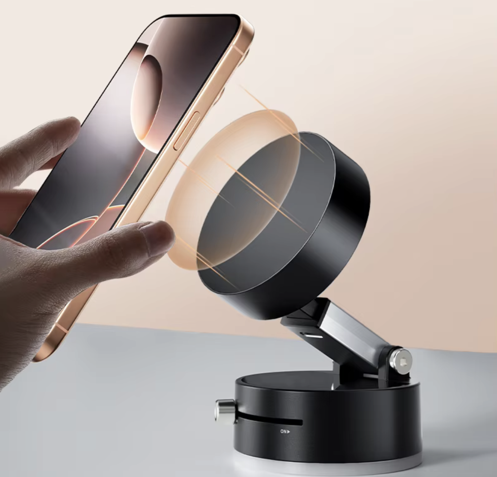 يجمع بين القوة المغناطيسية والامتصاص الفراغي لتوفير استقرار إضافي وثبات مثالي أثناء القيادة أو الاستخدام اليومي.